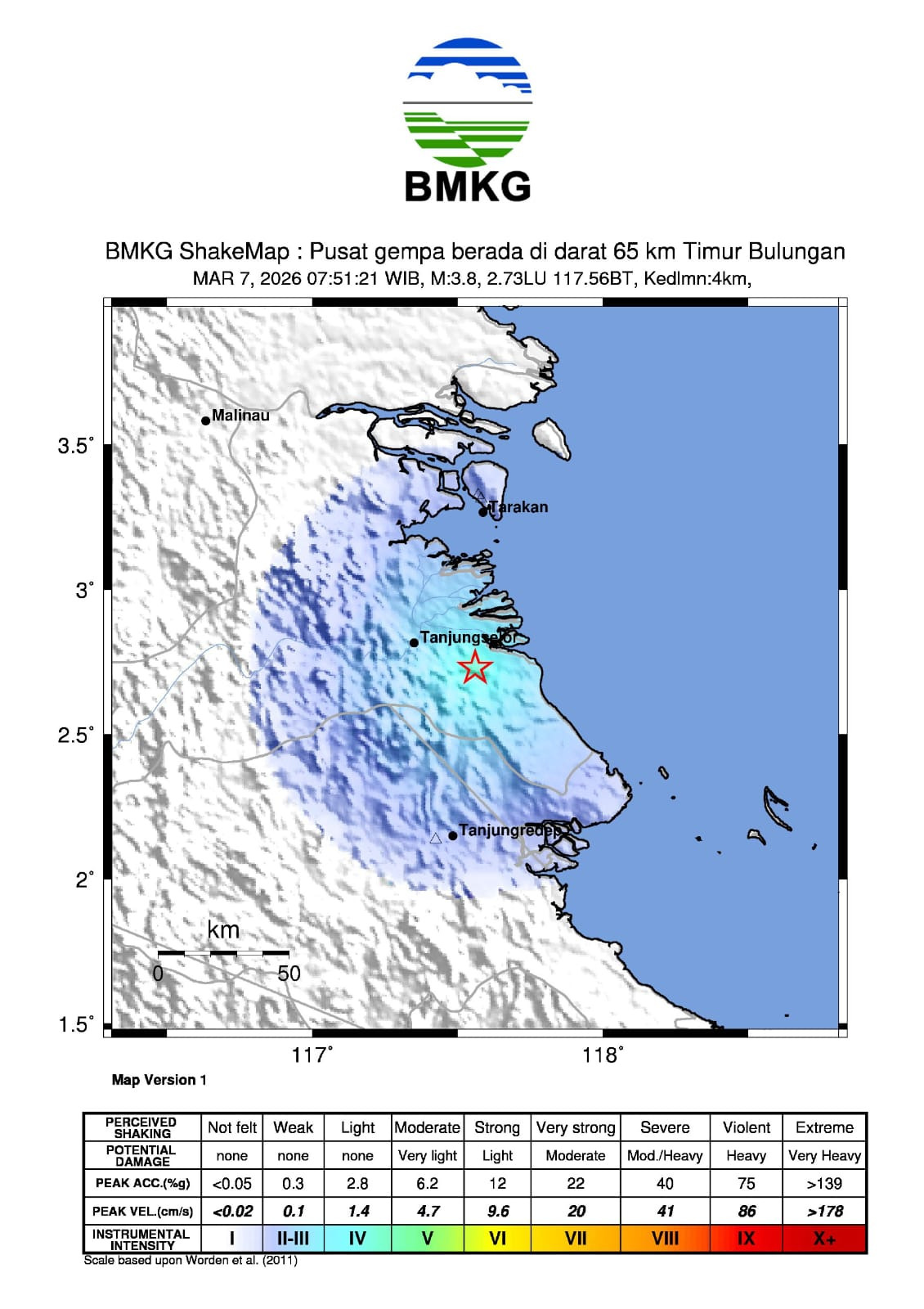 Kaltara BMKG Laporkan Gempa M 3,8 di Timur Bulungan, Warga Diminta Waspada Bangunan Retak Admin Pedia | 8 Maret 2026