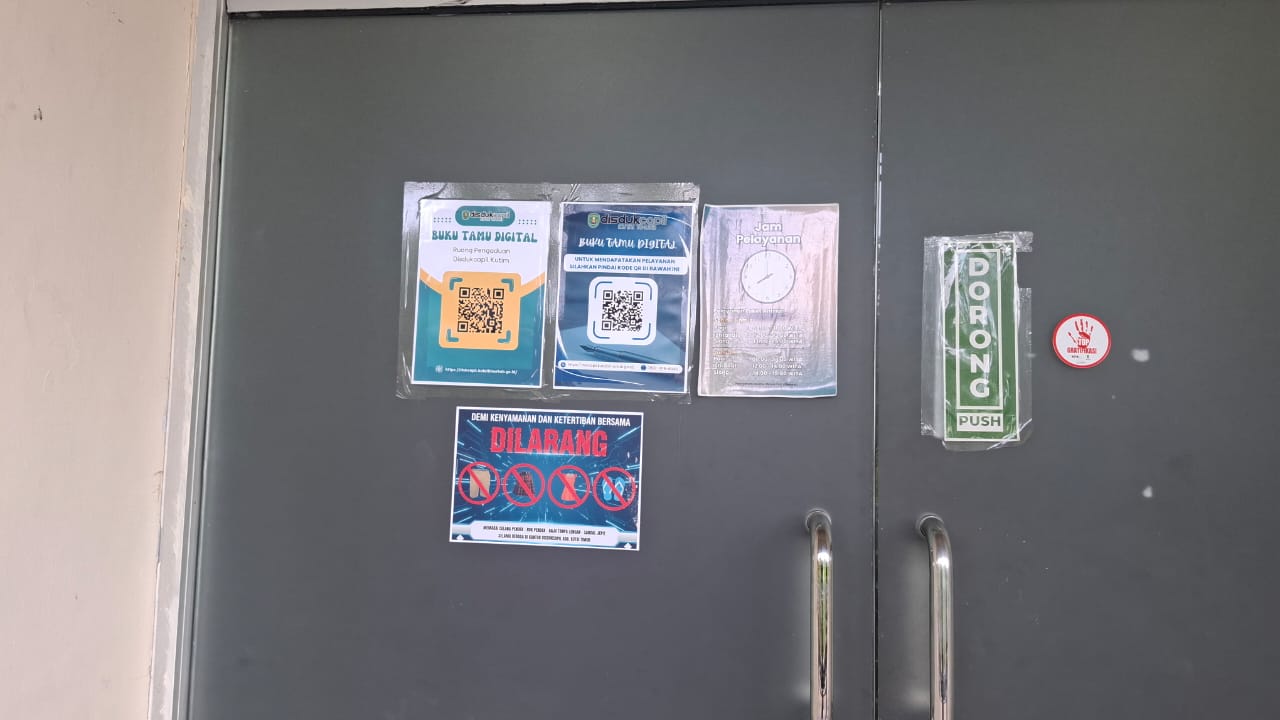 Stiker gratifikasi terpasang di pintu masuk pelayanan Disdukcapil Kutim