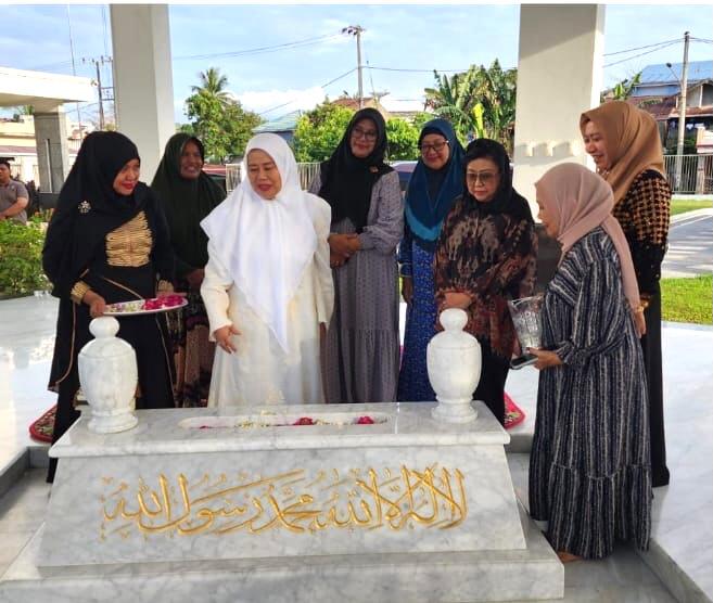 Dewi Yull ketika berziarah ke makam almarhumah Bunda Hj Norbaiti Isran di Sungai Kunjang Samarinda.