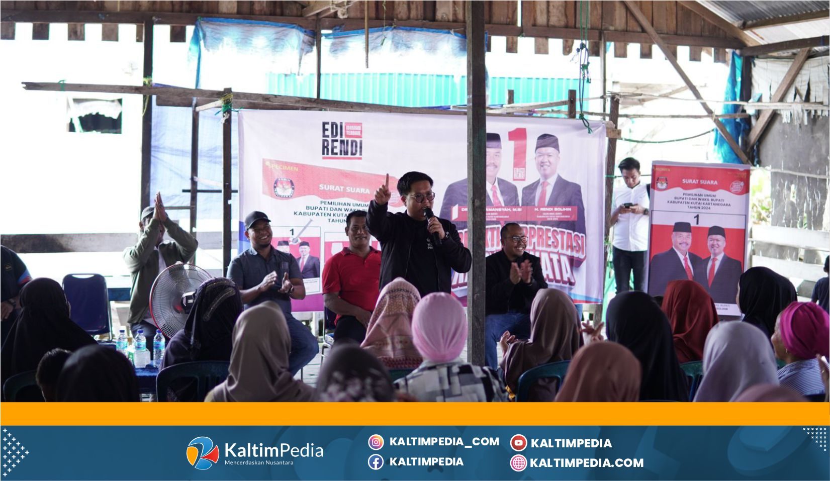 Tokoh masyarakat setempat, Amir, menyambut kedatangan Rendi di Desa Muara Pantuan. Ratusan warga berbondong-bondong hadir untuk menyaksikan kegiatan kampanye calon bupati nomor urut satu, Edi-Rendi.